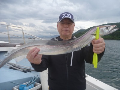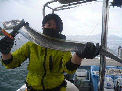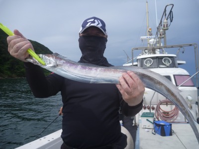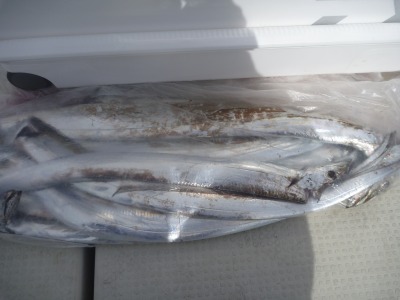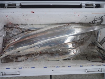 | 9月20日 タチウオに行って来ました。 タチウオの喰い立良く、頭20本超え 形は4,5本指〜3本指位でした。 |