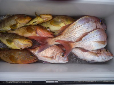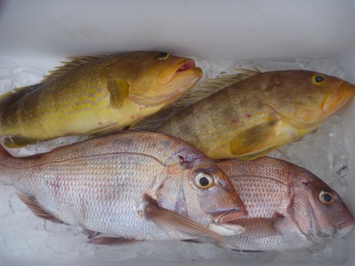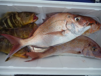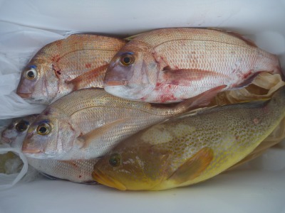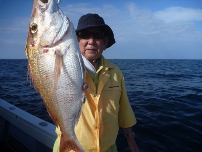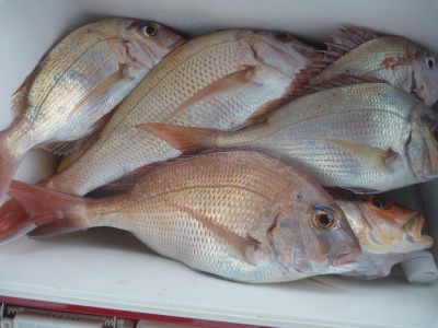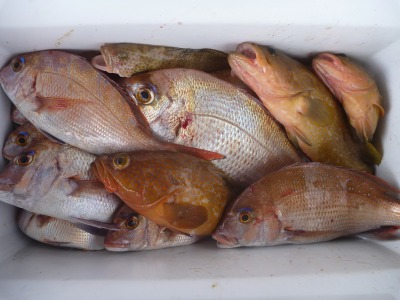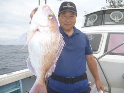 9月27日 タイラバに行って来ました。 12時頃迄は、真鯛、根魚の喰い立ち プチラッシュも 潮緩み、ポツリ、ポツリ 真鯛、1,6s〜800g36枚、 アオナ、ボッコ、ハマタイ等でした。 釣るお客様真鯛、10枚クーラー満タンでした。 |