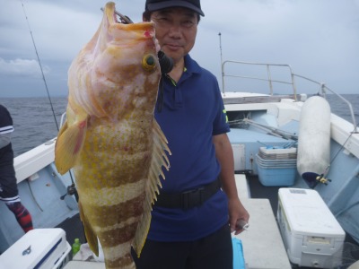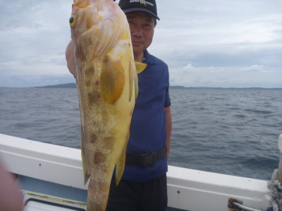 | 9月30日 少人数でタイラバに出船しました。 一流しからプチラッシュ真鯛、アオナ、アコウ喰い良く、 真鯛2,7s頭に30枚超え、アオナ、アコウ根魚等26尾でした。 頭、真鯛14枚にアコウ、アオナ等でクーラー満タンでした。 |